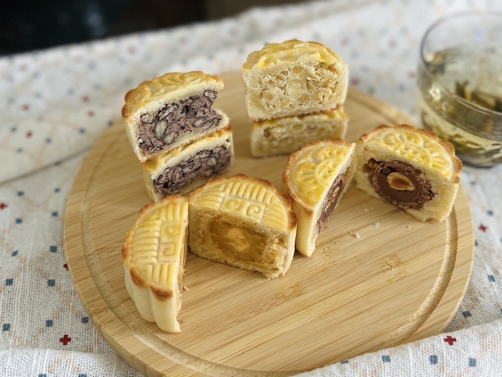 To the millennials and boomers, the classic mooncakes are the golden pastry with sweet paste fillings. The fillings could be vary, the most popular ones are red bean paste, lotus seeds paste, and five nuts. Back in the early 90’s, the Guang Dong style mooncake with the salted egg yolk filling flushed into the market. It is so delicious and delicate, and becomes popular drastically in China over night.
